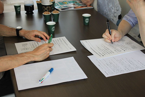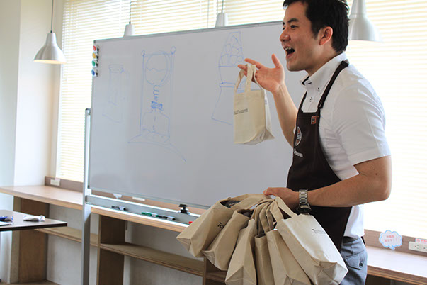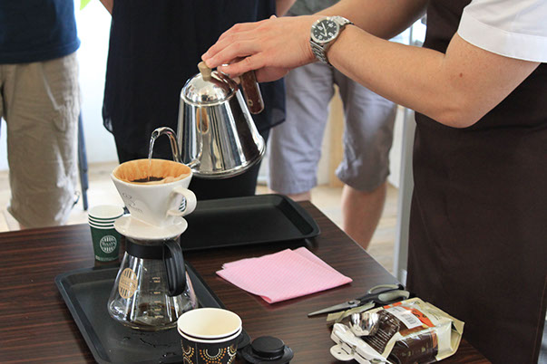 美味しいアイスコーヒーの淹れ方の実演と説明を受けた後、実際に参加者の皆様で美味しいアイスコーヒー作りに挑戦しました。
